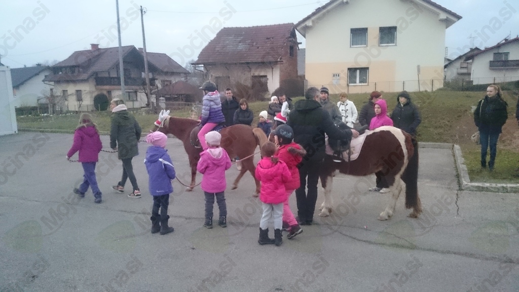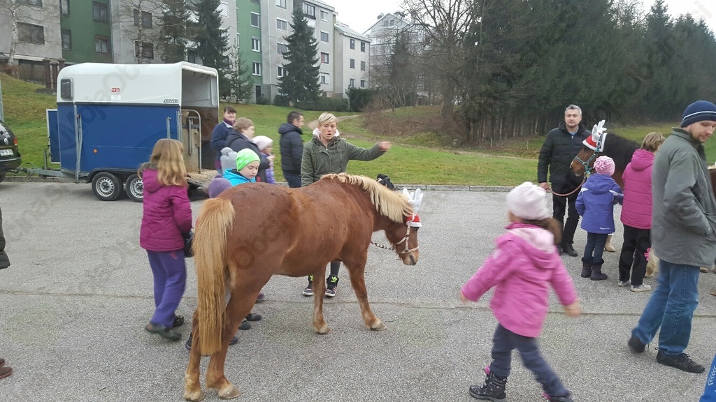 Leto se končuje in na OZRK Novo mesto smo našo zadnjo aktivnost letos posvetili otrokom. V sredo, 30.12.2015 so sta nas obiskala Urša in Tonček iz Zavoda Villa Artemida, ki sta na veliko veselje udeleženih otrok s seboj pripeljala tudi Mazo in Kuko, dve poni kobili v božični opravi. Najprej nam je Urša pripravila kratko predavanje kako pravilno ravnamo s konji in na kaj moramo biti pozorni, ko smo v njihovi bližini. Nato so otroci vse slišano postavili v prakso, saj so Mazo in Kuko lahko božali, krtačili, hranili s sladkorčki ter na največje veselje vseh, tudi zajahali. S tem druženjem smo otrokom, njihovim staršem in starim staršem ter tudi nam samim popestrili zaključek leta, saj takega obiska na OZRK Novo mesto še nismo imeli.