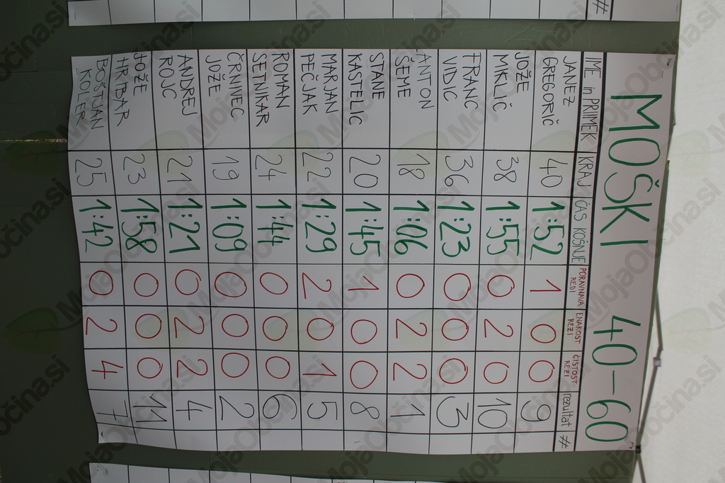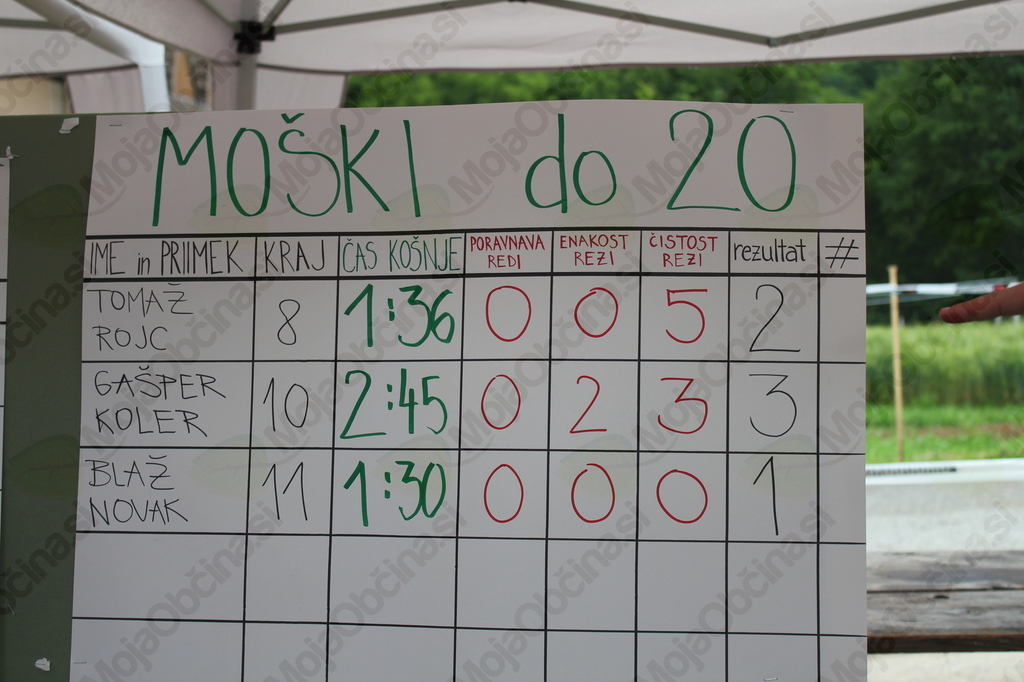 V košnji trave se je pomerilo 28 tekmovalcev od tega kar 6 predstavnic ženskega spola. Da naloga ni bila preveč lahka so bili tekmovalci razporejeni po spolu v štiri starostne skupine, in sicer: