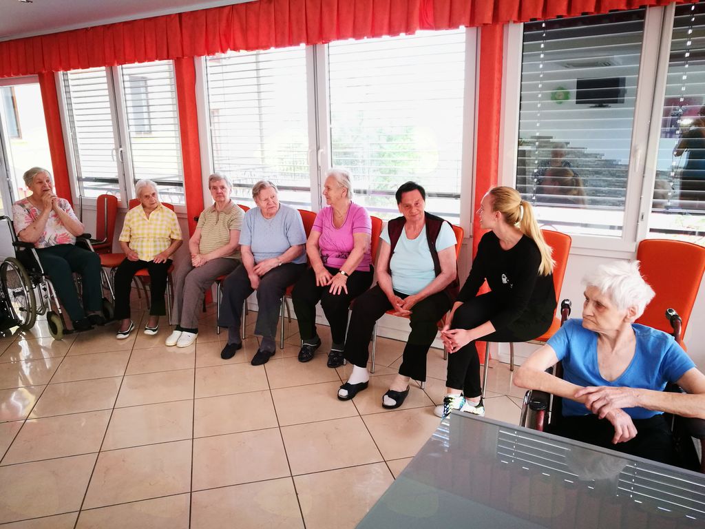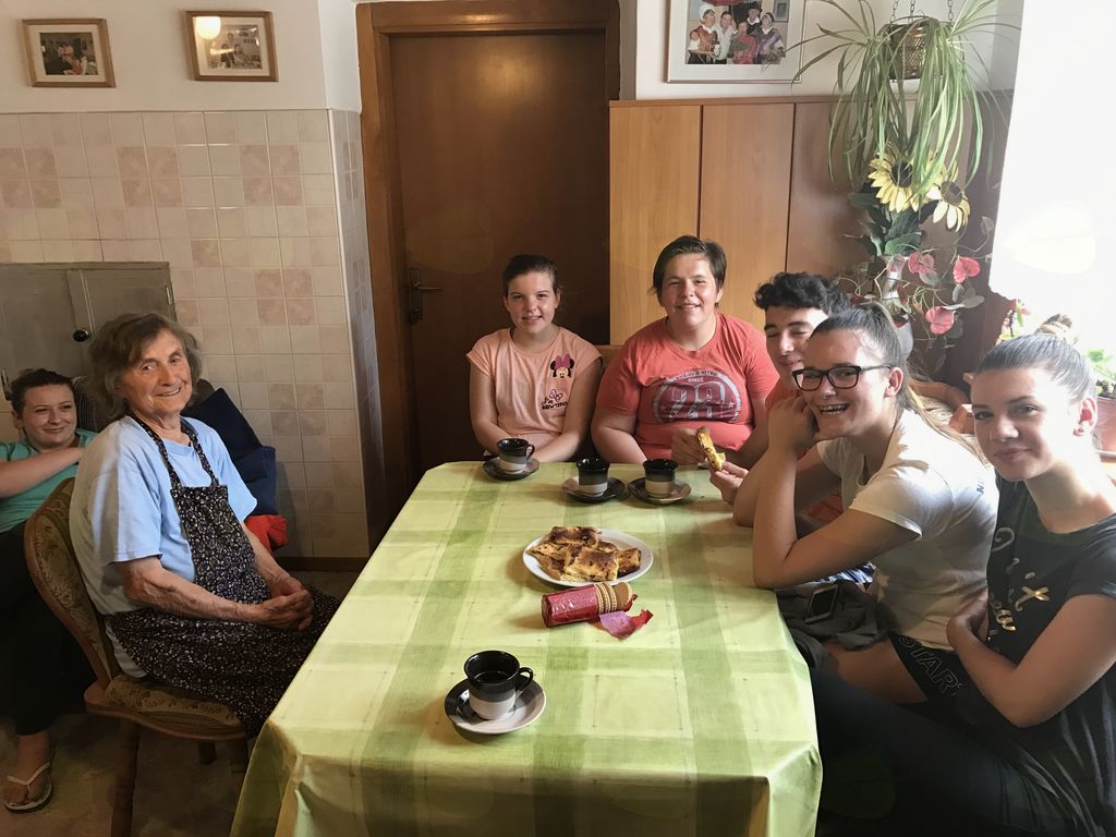 Tabora se je letos udeležilo 17 mladih skupaj s petimi mentoricami. Bivamo na OŠ Šmarjeta, kjer je poskrbljeno za nastanitev in prehrano. V dopoldanskem času opravljamo terensko delo, kar pomeni, da se po skupinah odpravimo do starostnikov v okolici, jim pomagamo pri manjših hišnih opravilih ter se z njimi družimo in pogovarjamo. Pri eni gospe smo pomagali pri zlaganju drv za zimo. Skupno bomo v tem tednu tako obiskali 15 starejših. Vsak dan se odpravimo tudi v bližnji Penzion Sreča, kjer mladi spoznavajo, kako poteka dan tamkajšnjih oskrbovancev, poslušajo njihove življenjske zgodbe, jih pospremijo na krajši sprehod in pomagajo pri hranjenju.