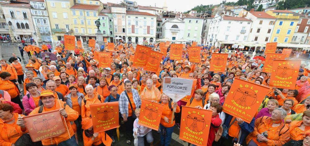 Prvič so se vse skupine Šole zdravja srečale v Piranu 22. septembra leta 2009, ko se je srečanja udeležilo okrog 180 telovadcev iz takrat delujočih enajstih skupin. Letos je na Tartinijevem trgu, kljub dežju, bilo okrog 1390 članov iz cele Slovenije. Trenutno je aktivnih 160 skupin po vseh dvanajstih regijah, delujejo pa v 68-ih občinah. Dogodek je del nacionalnega projekta “Slovenija v gibanju”, ki združuje vse športno-rekreativne prireditve in redne vadbe po Sloveniji.