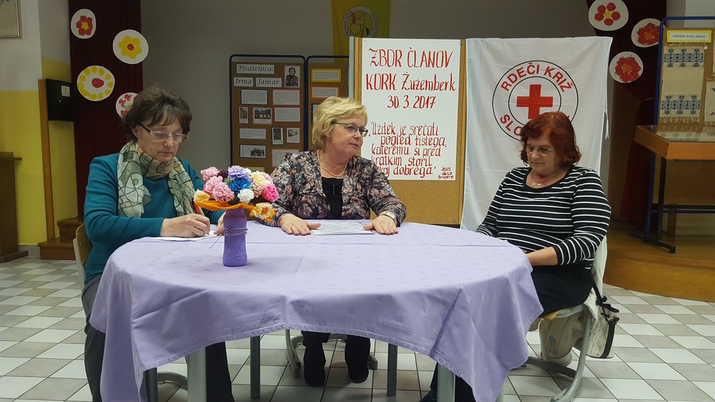 Včeraj so se, v OŠ Žužemberk, zbrale članice na zboru članov Krajevne organizacije RK Žužemberk. Pridružila sta se jim tudi podžupan Občine Žužemberk Jože Šteingel in sekretarka OZRK Novo mesto Barbara Ozimek, ki sta se jim zahvalila za njihovo prostovoljno delo. Na zboru je predsednica Alenka Sajovec podala poročilo o delu od novembra do konca leta 2016, v tem času so organizirali srečanje starejših in vse stare 80 let in več obiskali in jih pred novim letom obdarili. Sodelovali so tudi z OŠ Žužemberk in Društvom kmečkih žena Suhe krajine pri akciji Drobtinica, ko so zbirali sredstva za socialno šibke otroke za kritje šolske prehrane. V letu 2017 si je nov odbor, ki je bil na zboru potrjen za mandat štirih let, zastavil pester program. V letošnjem letu so že skoraj na celotnem območju pobrali članarino, pomagali socialno šibkim s prehranskimi paketi in obiskali nekatere jubilante, ki so dopolnili 80 in 90 let in več. Ob dnevu zdravja, v petek 7. aprila, ob 19.00, v OŠ Žužemberk, bodo organizirali predavanje o prvi pomoči. 20. junija bo krvodajalska akcija v Žužemberku na katero vabijo krvodajalce in tudi tiste, ki še niso darovali krvi. Za občinski praznik bodo organizirane meritve in podelitev priznanj krvodajalcem. KORK Žužemberk ob novem zagonu želimo, da bi pri svojem delu bili uspešni in z pomočjo RK oskrbeli najbolj potrebne pomoči.