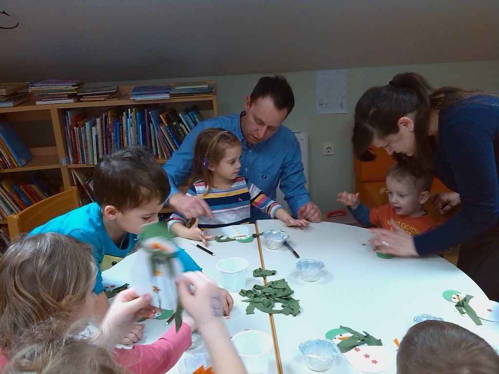 V ustvarjalnici smo izdelali snežaka, samo da je naš imel nos iz korenčka, ne iz snega. Če bi bil iz snega, bi se ob zdajšnjem vremenu gotovo hitro stopil. Zdaj bodo sledile pomladne teme.