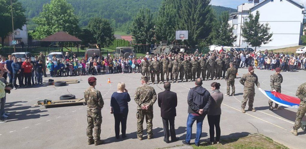 Današnji sončni dan je bil prav nekaj posebnega za učenke in učence ter otroke iz vrtcev pri Osnovni šoli Prevole in Žužemberk. Obiskali so jih namreč vojakinje, vojaki in poveljnik vojašnice Franca Uršiča iz Novega mesta. Zbrane so v nagovoru pozdravili ravnateljica Osnovne šole Žužemberk, ga. prof. Mira Kovač, poveljnik vojašnice g. polkovnik Vinko Maraš in župan Občine Žužemberk, g. Jože Papež. Poročnica, Irma Plavec, nekoč tudi sama učenka Osnovne šole v Žužemberku, je predstavila poklic vojaka, v katerem imajo pomembno vlogo tudi vojakinje. Kot je povedala ena od učenk, mora biti vojak slovenske vojske pogumen in mora ljubiti svojo domovino. Otroci so imeli priložnost spoznati, kako se začne dan v vojašnici. Začne se z dvigom zastave ob petju slovenske himne, nato pa sledi jutranja telovadba. Učenci devetih razredov so se pomerili v kvizu in zabavnih igrah. Če želiš zmagati, sta pomembna sodelovanje in ekipni duh in tako je tudi v slovenski vojski. Ekipi medvedov in risov sta bili ob igrišču deležni glasnega navijanja, na koncu pa je največ točk zbrala ekipa risov. Z velikim zanimanjem so si nato učenke in učenci ter najmlajši ogledali predstavljeno orožje, brezpilotno letalo, kako se odkrivajo mine ter kako v notranjosti izgledata oklepno in policijsko vozilo. Dolgčas ni bilo niti vrtičkarjem. Ti so premagovali ovire, kij jih vojaki uporabljajo za pridobivanje spretnosti pri gibanju po bojišču. Za vse je bil obisk vojakov in poveljnika prijeten dogodek ob spoznanju, kako pomemben je za varnost naše domovine poklic vojaka. In kot je dejal g. župan Jože Papež, želja nas vseh pa je, da našim vojakom in vojakinjam nikoli nebi bilo potrebno braniti naše domovine v vojni.
