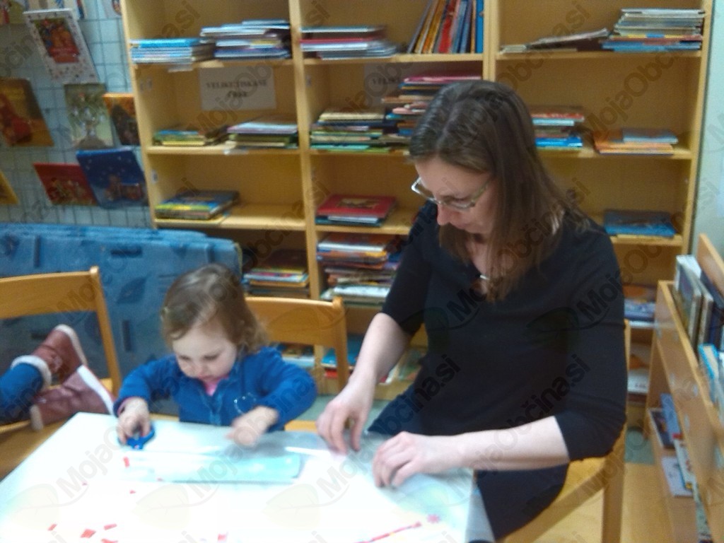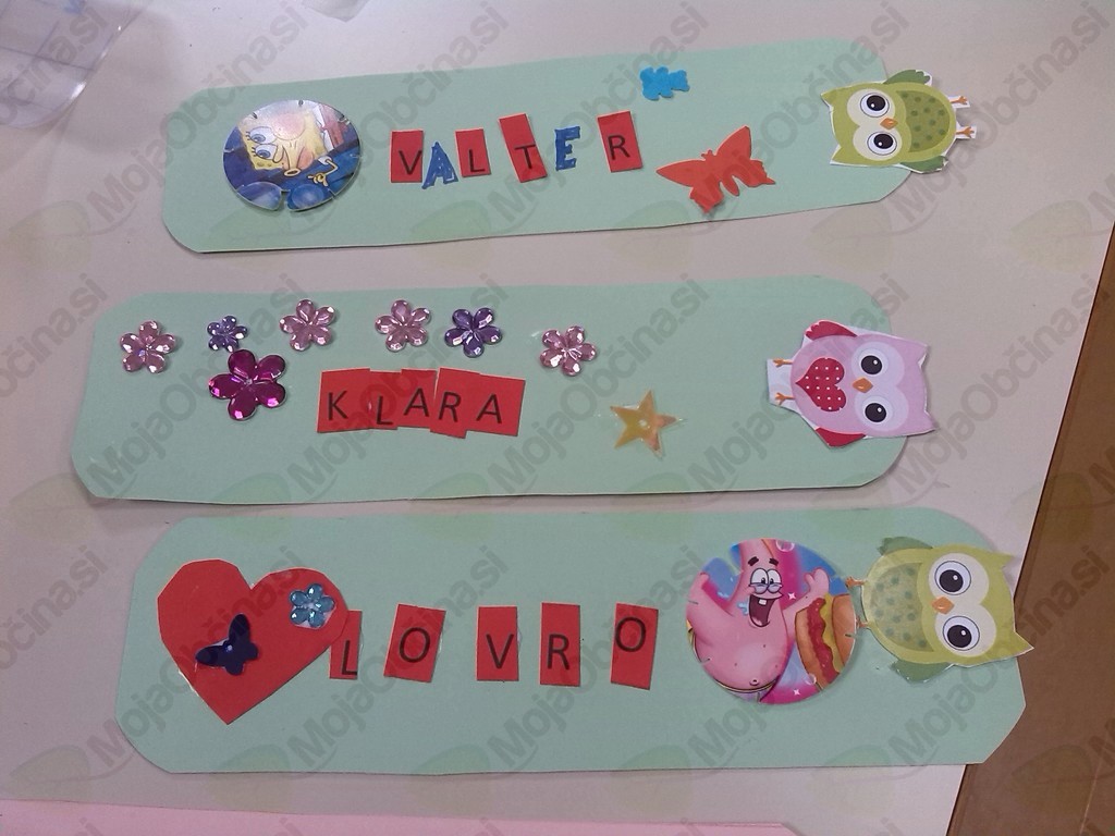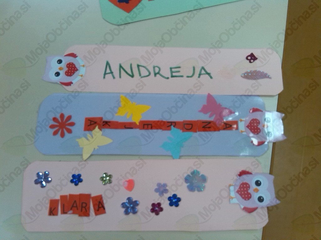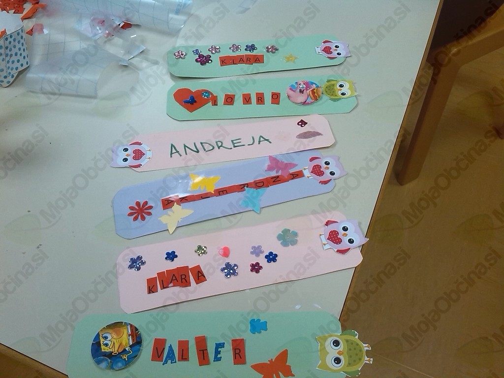 V ustvarjalni delavnici smo izdelali knjižne kazalke z imeni otrok in staršev, ki jih bodo odslej uporabljali pri branju in tako knjige ne bodo imele več »ušesa«.