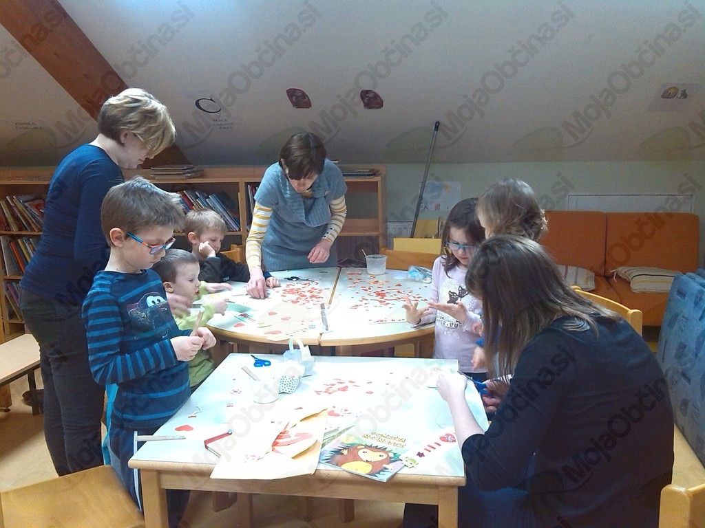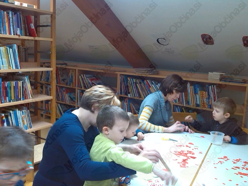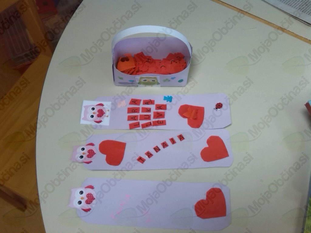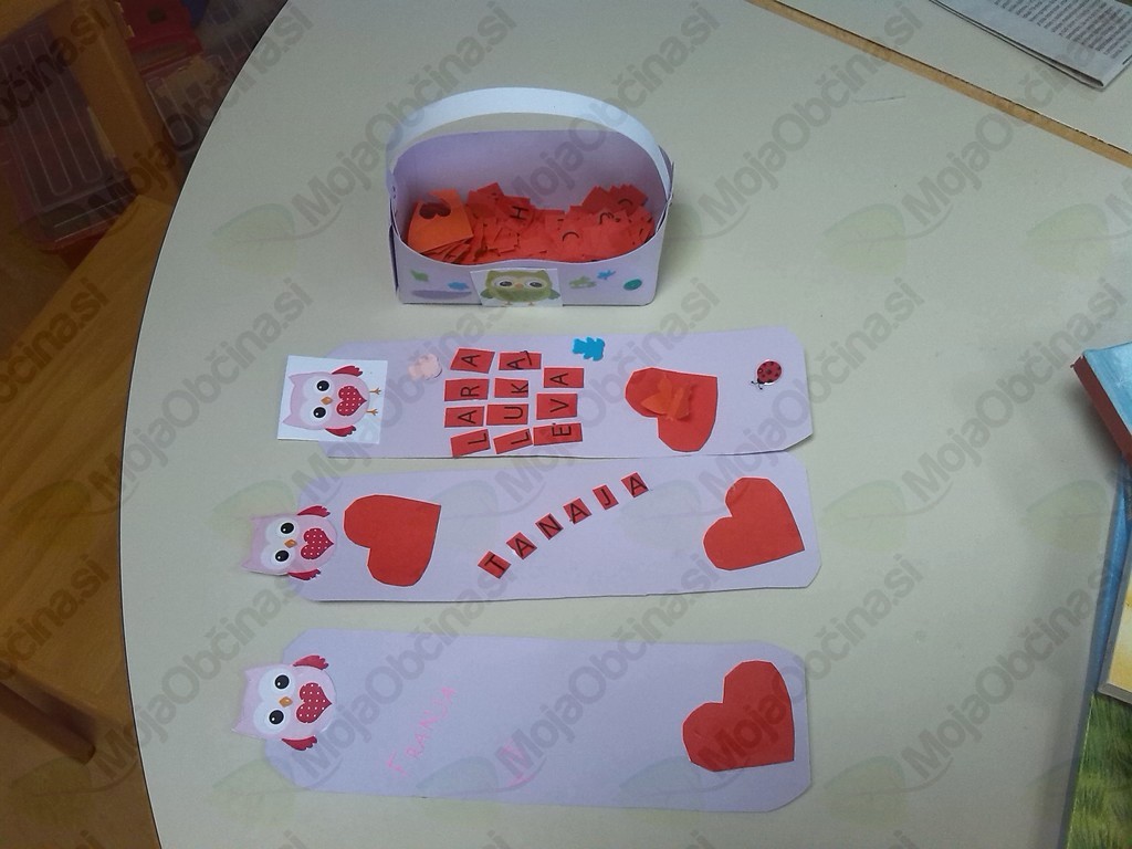 V ustvarjalni delavnici smo izdelali knjižne kazalke z imeni otrok in staršev, ki jih bodo odslej uporabljali pri branju in tako knjige ne bodo imele več »ušesa«.
