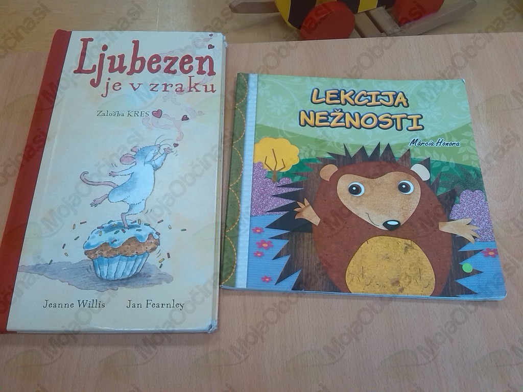Ljubezen je v zraku ( avtorica Jeanne Willis) govori o mišku Malu, ki je neskončno zaljubljen v njo, ki pa je tam visoko, kjer je Mal ne doseže. Na vse pretege se trudi, da bi jo dosegel in ji dal poljubček, nazadnje pa se ona – žirafa Longolina skloni z višav in da Malu nežen poljubček. Nihče namreč ni premajhen za ljubezen…