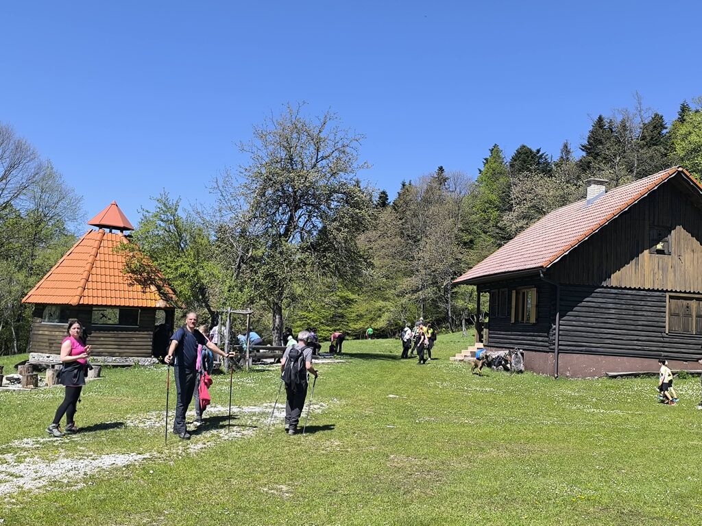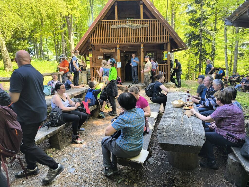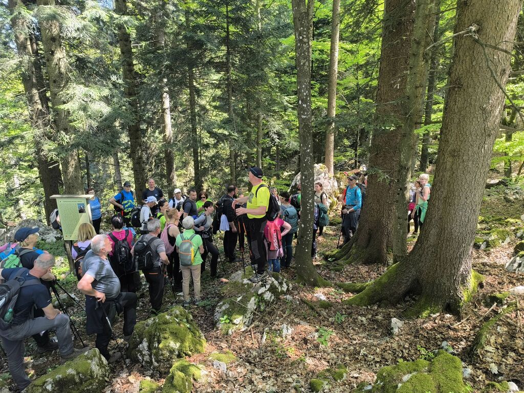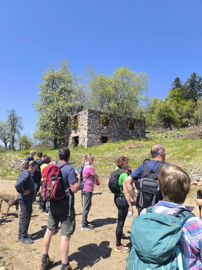 Na pohod in ogled kočevarskih vasi smo se odpravili 26. aprila 2026, na čudovito sončno nedeljo. Iz Podgozda je štartala manjša skupina 25 pohodnikov, ki se jim je na Svetem Petru pridružilo je okrog 60 udeležencev, željnih spoznavanja zgodovine Kočevarjev. Najprej smo se spustili v Zgornjo Toplo Reber, kjer smo kmalu prišli do košenic in sadnega drevja, ki skupaj z ostanki hiš in vodnjakov pove, da so nekdaj tu živeli ljudje. Zemlja je bila skromna, na približno 800 metrov nadmorske višine tudi omejeni pogoji za pridelavo, zato so si Kočevarji večinoma z lesom ustvarjali pogoje za preživetje. Nadaljevali smo na Spodnjo Toplo Reber, ki je bila s cerkvijo center tega kočevarskega okoliša. Cerkveni stolp je obnovljen in predstavlja spomin na prebivalce, ki so v začetku 2. svetovne vojne zaradi zavajajočih obljub iz Rajha zapustili svoje domove, katerih začetki segajo v 15. stoletje. Pot naj je nato vodila do Luže, kjer nas je ob lepo vzdrževani brunarici pričakala čudovita jasa, polna cvetočih marjetic, ter nekaj klopi in miz, kar je ponujalo prostor za počitek in malico. Ne samo Luža, kjer smo si dejansko ogledali lužo z vodo, tudi ostale kočevarske vasi so nastajale ob izvirih vode, kar je bil osnovni pogoj za preživetje. Iz Luže smo se usmerili na Rdeči Kamen, ki ima tudi povedno ime, saj so skale dejansko rdečkasto obarvane. Na tem delu pohoda smo se dotaknili t. i. vzdržljivostne poti po medvedovih stopinjah ter spoznali ostanke partizanske bolnice Smuka. Zadnja vas na resnično zanimivem pohodu poti je bil Komolec, kjer so ostanki novejše civilizacije, saj so se tu zbirali furmani, kasneje pa je bila farma živine. Tudi danes je razvidno, da območje ni povsem zapuščeno, saj je vidno, da se grmovje in drevje še vedno čisti. Krožno pot smo sklenili nazaj na Zgornji Topli Rebri po približno štirih urah poti, ki so jo vsi pohodniki z velikim zanimanjem prehodili in spotoma prisluhnili vsem predstavljenim zanimivostim vodnika, kar nekaj informacij pa so udeleženci izmenjali med sabo. O Kočevarjih je kar nekaj pisanih zgodovinskih virov, nekaj je še ljudskega izročila, ki se prenaša na nove generacije. To je bilo razvidno tudi na opisanem pohodu, saj je bilo med nami veliko mladih udeležencev, ki so se pohoda udeležili zaradi zanimanja za zgodovino in skrivnosti neokrnjene narave Kočevskega roga.