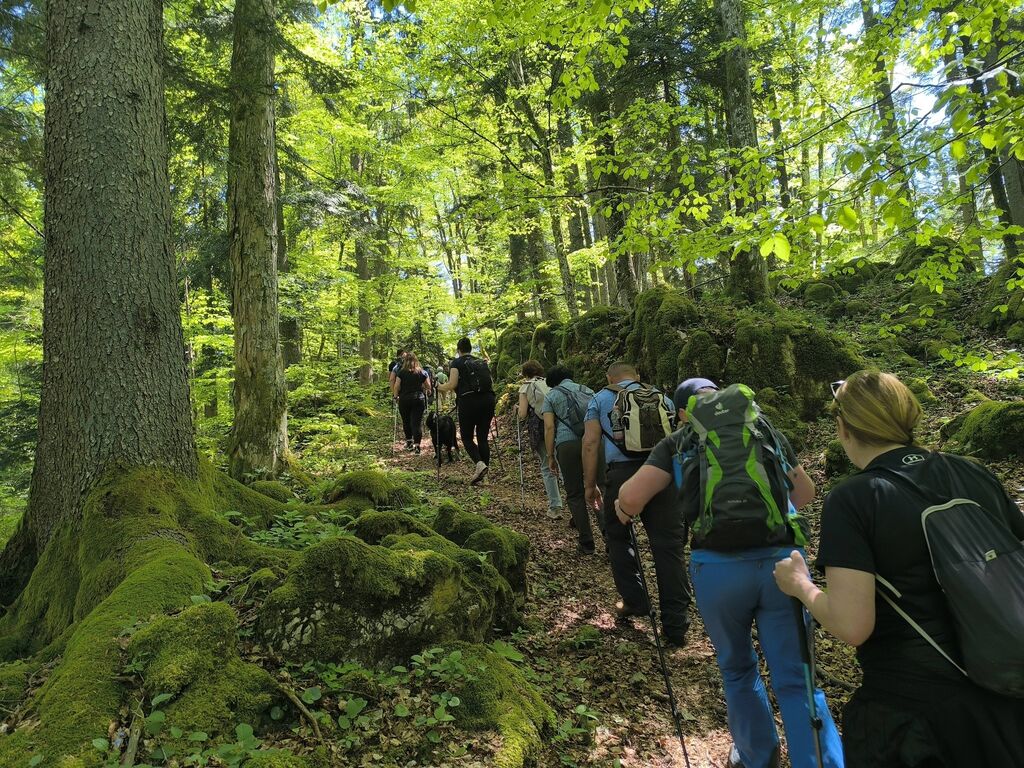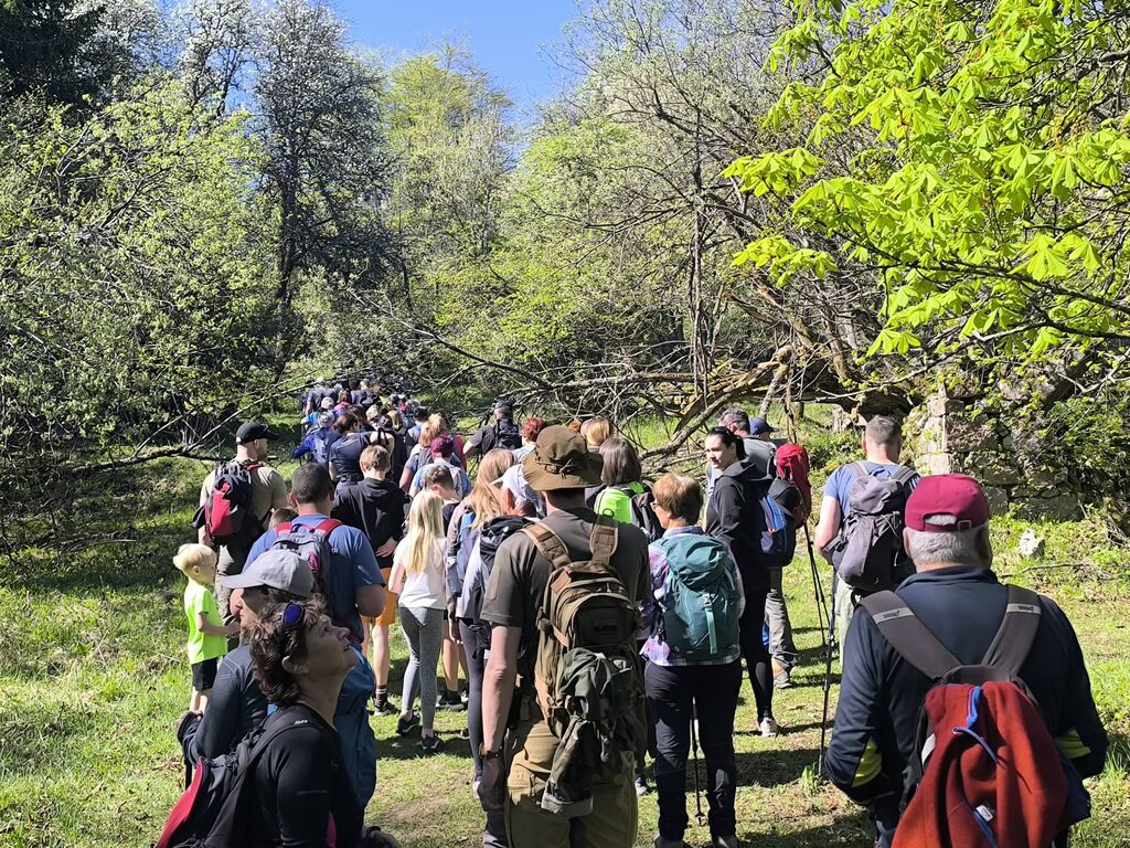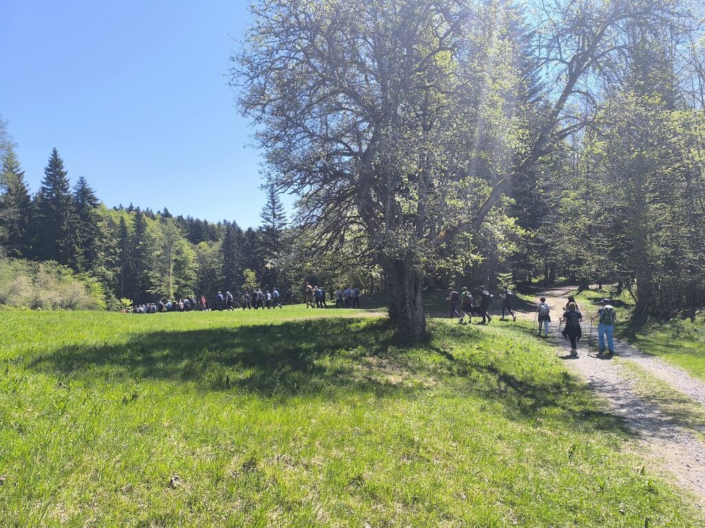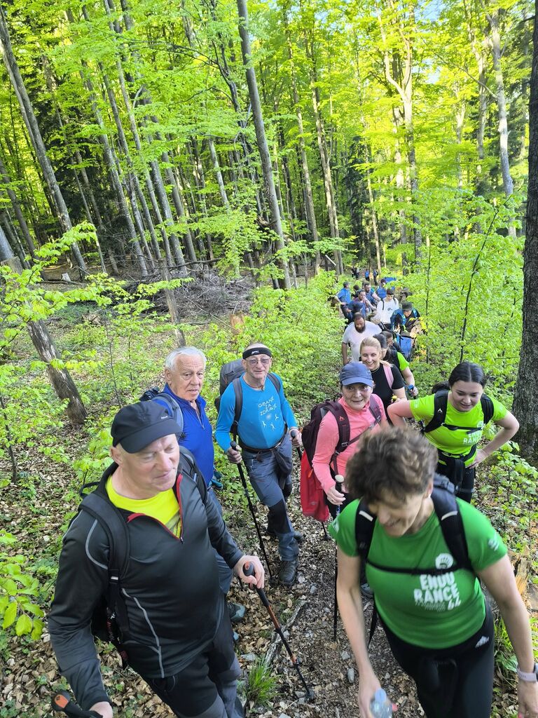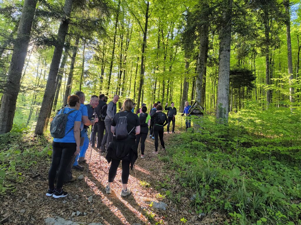 Na pohod in ogled kočevarskih vasi smo se odpravili 26. aprila 2026, na čudovito sončno nedeljo. Iz Podgozda je štartala manjša skupina 25 pohodnikov, ki se jim je na Svetem Petru pridružilo je okrog 60 udeležencev, željnih spoznavanja zgodovine Kočevarjev. Najprej smo se spustili v Zgornjo Toplo Reber, kjer smo kmalu prišli do košenic in sadnega drevja, ki skupaj z ostanki hiš in vodnjakov pove, da so nekdaj tu živeli ljudje. Zemlja je bila skromna, na približno 800 metrov nadmorske višine tudi omejeni pogoji za pridelavo, zato so si Kočevarji večinoma z lesom ustvarjali pogoje za preživetje. Nadaljevali smo na Spodnjo Toplo Reber, ki je bila s cerkvijo center tega kočevarskega okoliša. Cerkveni stolp je obnovljen in predstavlja spomin na prebivalce, ki so v začetku 2. svetovne vojne zaradi zavajajočih obljub iz Rajha zapustili svoje domove, katerih začetki segajo v 15. stoletje. Pot naj je nato vodila do Luže, kjer nas je ob lepo vzdrževani brunarici pričakala čudovita jasa, polna cvetočih marjetic, ter nekaj klopi in miz, kar je ponujalo prostor za počitek in malico. Ne samo Luža, kjer smo si dejansko ogledali lužo z vodo, tudi ostale kočevarske vasi so nastajale ob izvirih vode, kar je bil osnovni pogoj za preživetje. Iz Luže smo se usmerili na Rdeči Kamen, ki ima tudi povedno ime, saj so skale dejansko rdečkasto obarvane. Na tem delu pohoda smo se dotaknili t. i. vzdržljivostne poti po medvedovih stopinjah ter spoznali ostanke partizanske bolnice Smuka. Zadnja vas na resnično zanimivem pohodu poti je bil Komolec, kjer so ostanki novejše civilizacije, saj so se tu zbirali furmani, kasneje pa je bila farma živine. Tudi danes je razvidno, da območje ni povsem zapuščeno, saj je vidno, da se grmovje in drevje še vedno čisti. Krožno pot smo sklenili nazaj na Zgornji Topli Rebri po približno štirih urah poti, ki so jo vsi pohodniki z velikim zanimanjem prehodili in spotoma prisluhnili vsem predstavljenim zanimivostim vodnika, kar nekaj informacij pa so udeleženci izmenjali med sabo. O Kočevarjih je kar nekaj pisanih zgodovinskih virov, nekaj je še ljudskega izročila, ki se prenaša na nove generacije. To je bilo razvidno tudi na opisanem pohodu, saj je bilo med nami veliko mladih udeležencev, ki so se pohoda udeležili zaradi zanimanja za zgodovino in skrivnosti neokrnjene narave Kočevskega roga.