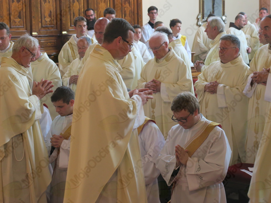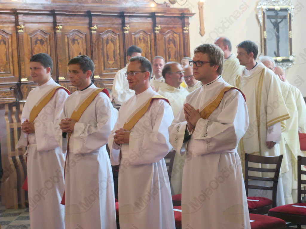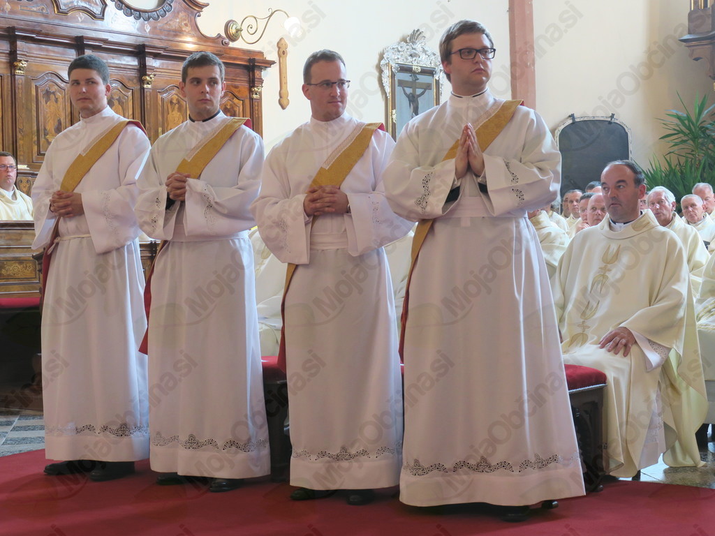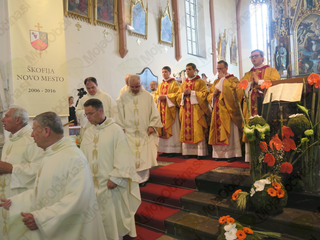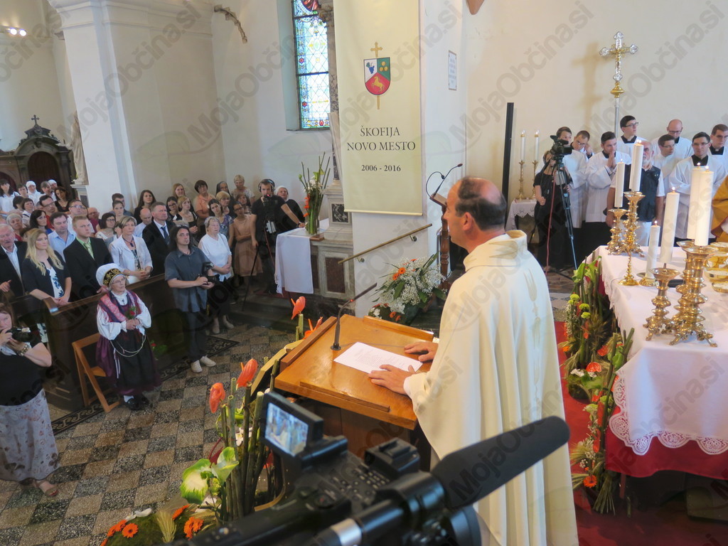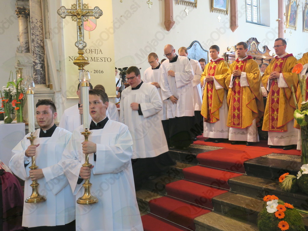 Novomašnik bod' pozdravljen te dni močno odmeva v novomeški škofiji. V škofiji Novo mesto, ki letos praznuje deset let delovanja, so v soboto, 25. junija v stolnici sv. Nikolaja mašniško posvečenje prejeli štirje novomašniki: Matej Gnidovec iz Župnije Žužemberk, Boštjan Gorišek iz Župnije Ajdovec, Štefan Hosta iz Župnije Šentjernej in Roman Ivanetič iz Župnije Semič. Novomašnike in množico vernikov, posebej še iz omenjenih štirih župnij je pozdravil in nagovoril novomeški škof msgr. Andrej Glavan: »Dragi Matej, Boštjan, Štefan in Roman. Pred osmimi meseci sem vam pri diakonskem posvečenju naročal: »Glej, da boš veroval, kar boš bral; učil, kar boš veroval; živel, kar boš učil.« Danes pa vas bom pri izročitvi darov spodbudil: »Umevaj, kar delaš, ravnaj se po tem, kar opravljaš, živi po skrivnosti Gospodovega križa.« Slovesnost nove maše v stolni cerkvi obogateno s petjem mešanega pevskega zbora iz štirih župnij pod vodstvom Žužemberčanke Nine Zajec je spremljala množica vernikov iz cele škofije, med njimi tudi okrog sedemdeset duhovnikov. Po končani sveti maši, je pred cerkvijo sledila pogostitev domačih dobrot in novomašniške kapljice.