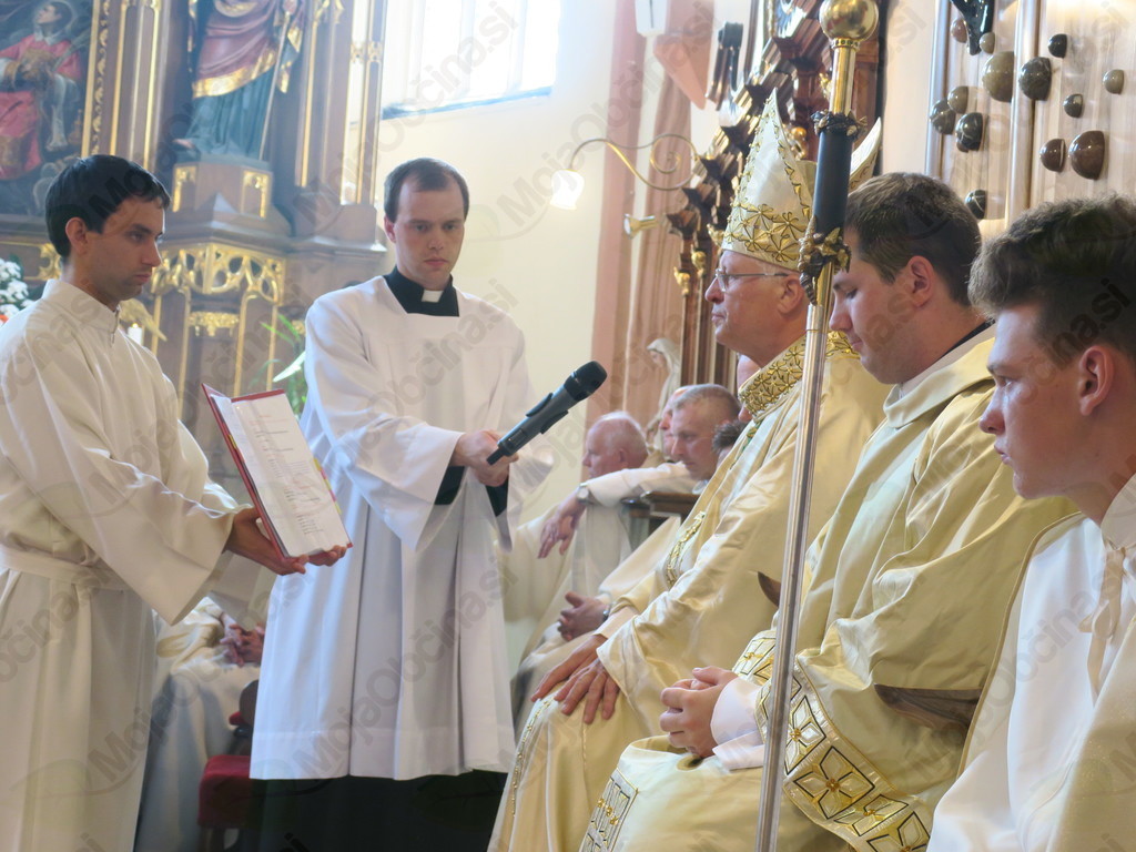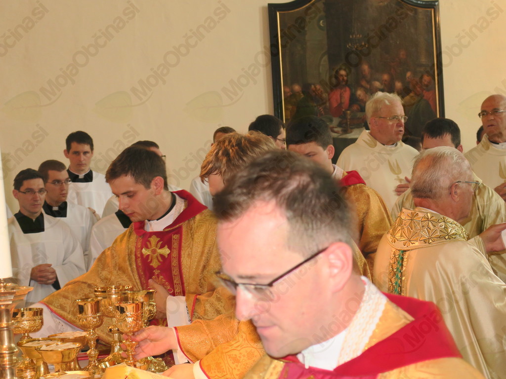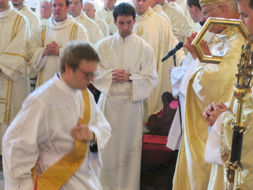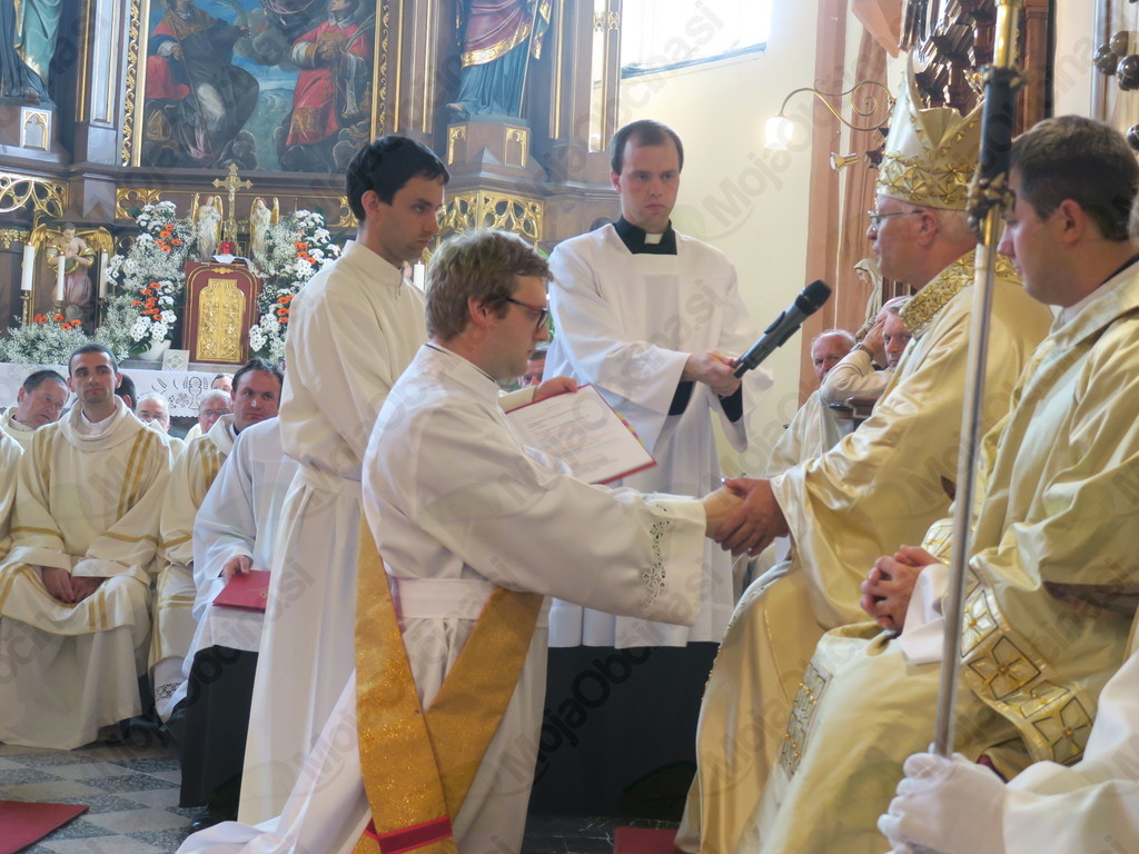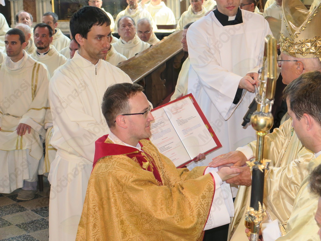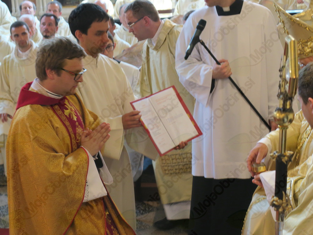 Novomašnik bod' pozdravljen te dni močno odmeva v novomeški škofiji. V škofiji Novo mesto, ki letos praznuje deset let delovanja, so v soboto, 25. junija v stolnici sv. Nikolaja mašniško posvečenje prejeli štirje novomašniki: Matej Gnidovec iz Župnije Žužemberk, Boštjan Gorišek iz Župnije Ajdovec, Štefan Hosta iz Župnije Šentjernej in Roman Ivanetič iz Župnije Semič. Novomašnike in množico vernikov, posebej še iz omenjenih štirih župnij je pozdravil in nagovoril novomeški škof msgr. Andrej Glavan: »Dragi Matej, Boštjan, Štefan in Roman. Pred osmimi meseci sem vam pri diakonskem posvečenju naročal: »Glej, da boš veroval, kar boš bral; učil, kar boš veroval; živel, kar boš učil.« Danes pa vas bom pri izročitvi darov spodbudil: »Umevaj, kar delaš, ravnaj se po tem, kar opravljaš, živi po skrivnosti Gospodovega križa.« Slovesnost nove maše v stolni cerkvi obogateno s petjem mešanega pevskega zbora iz štirih župnij pod vodstvom Žužemberčanke Nine Zajec je spremljala množica vernikov iz cele škofije, med njimi tudi okrog sedemdeset duhovnikov. Po končani sveti maši, je pred cerkvijo sledila pogostitev domačih dobrot in novomašniške kapljice.