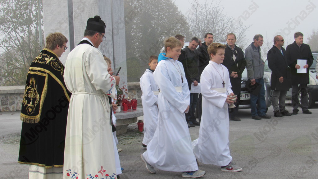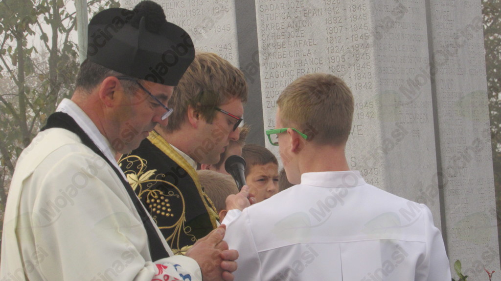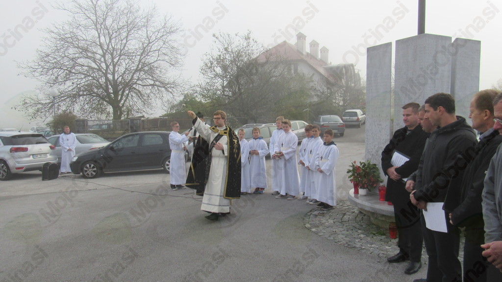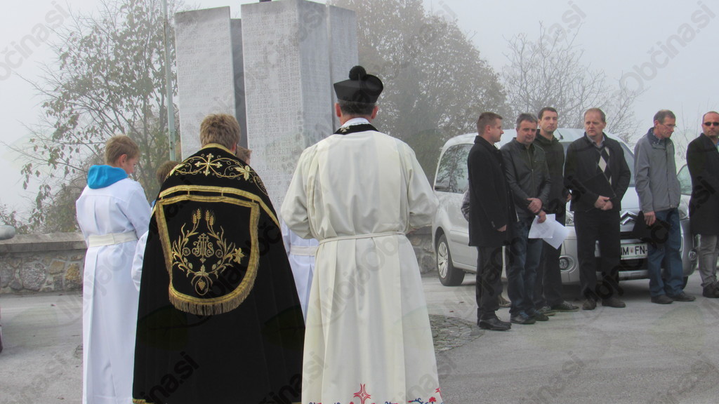 Ob spomeniku padlim domobrancem in žrtvam so se v spoštljivi tišini v nedeljo, 25. oktobra po prvi jutranji maši v cerkvi sv. Mohorja in Fortunata zbrali verniki, pa tudi svojci padlih domobrancev, civilistov in žrtev povojnih pobojev, čigar imena so vklesana na spomeniku. Meglice z jutranjo meglo prepredeno pokrajino, je na trenutke zarazblinila pesem pevcev moškega pevskega zbora Cirila Zajca pod vodstvom zborovodkinje Nine Zajec, molitve pa sta opravila žužemberški dekan Franc Vidmar in diakon Matej Gnidovec. Krajšo slovesnost so pevci zaključili s slovensko narodno pesmijo Oj, Doberdob.
