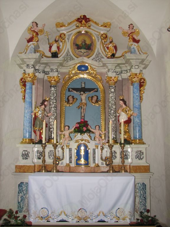 Cerkvica, ki stoji v neposredni bližini vasi Vrhovo, datira v visoki srednji vek. Osnova je bila zgrajena v 12. stoletju- času križarskih vojn, tekom stoletij pa je doživela kar nekaj sprememb. Enako je bilo z notranjo opremo in oltarji. Sedanji glavni oltar je bil narejen leta 1884, kipi svetnikov na njem pa so še starejši, saj so s prejšnjega oltarja. Vse skupaj je že močno načel zob časa, zato so se vaščani odločili, da je čas za obnovo. Zahtevno delo so zaupali restavratorskem ateljeju Legan, kjer so oltar v celoti obnovil in mu povrnil prvotni sijaj. Celovita obnova in zaščita bosta omogočili, da bo lahko služil tudi prihodnjim generacijam Križanom in vernikom od drugod.