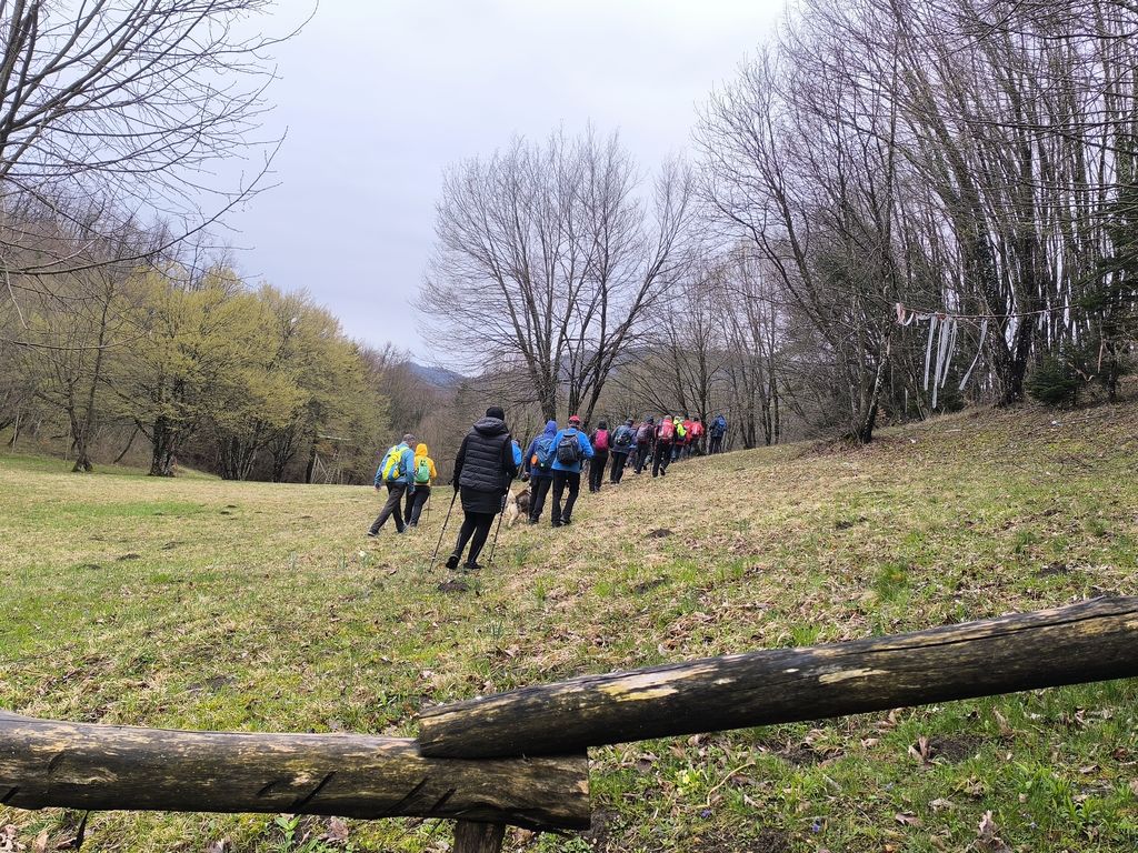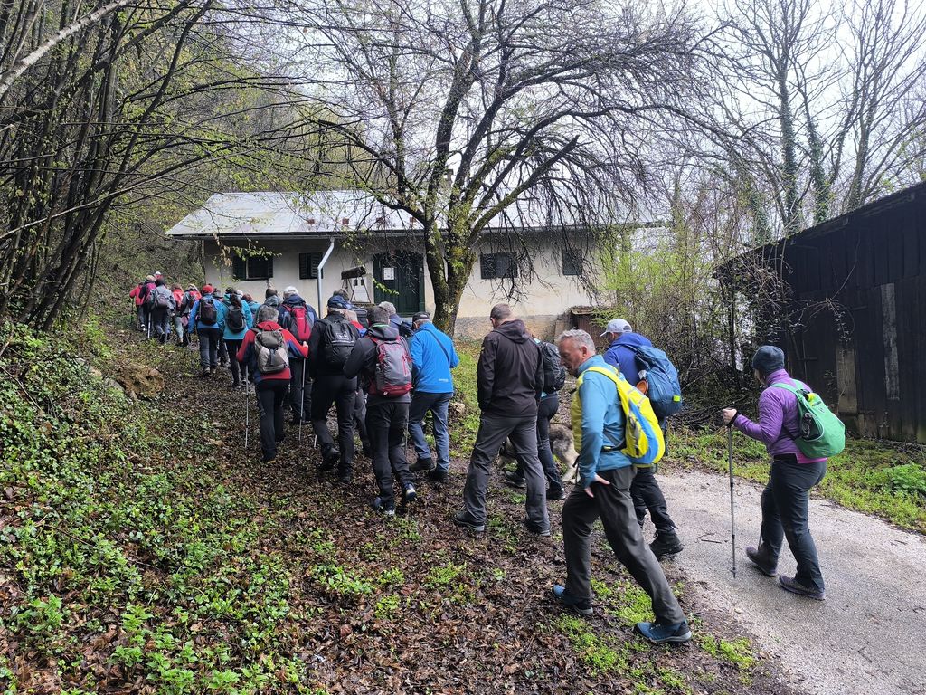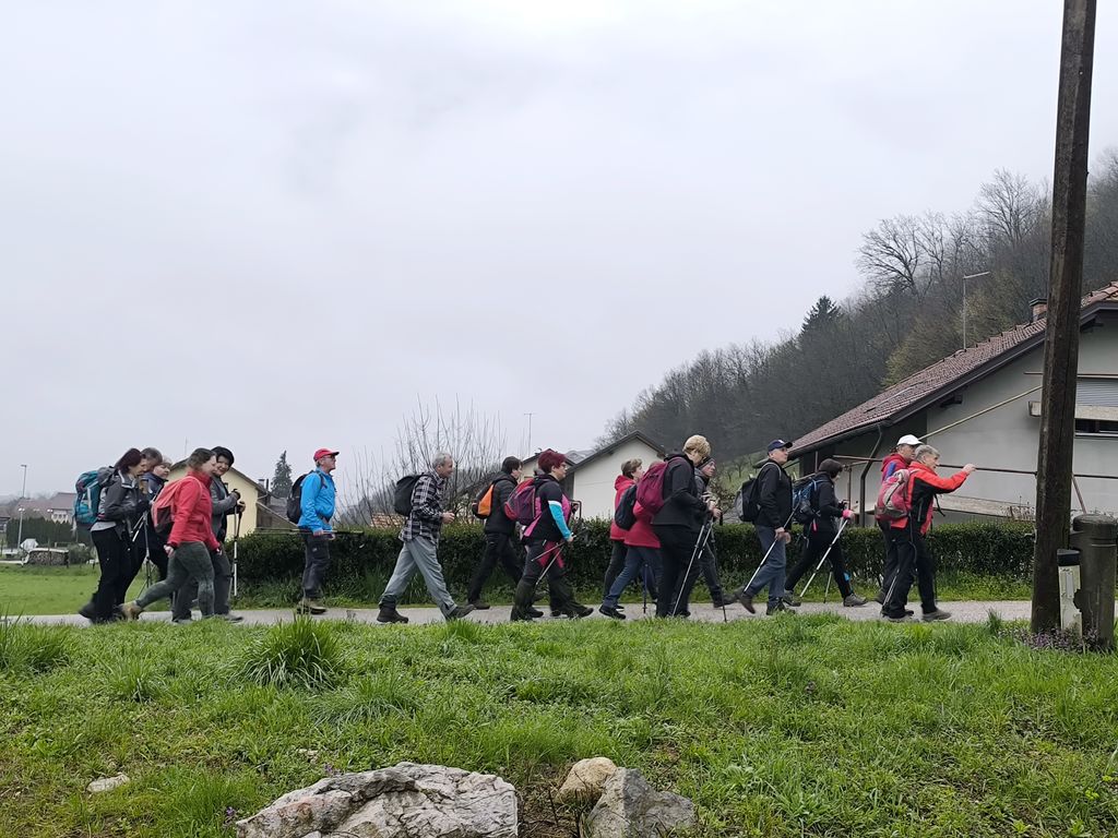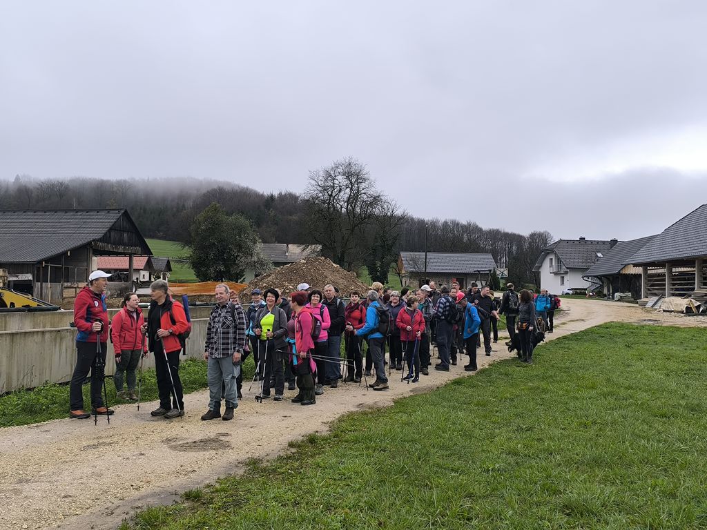 Blizu šestdeset pohodnikov se je na prvo nedeljo po prehodu na poletni čas zbralo na štartu na Dvoru ob nogometnem igrišču. Dež je na srečo prenehal, je pa turobno megleno jutro verjetno marsikoga zadržalo doma. Že ob pripravi prvega pohoda smo se odločili, da ga izpeljemo v vsakem vremenu in tudi to tradicijo ohranjamo. Po izmenjavi jutranjih pozdravov in izrečeni dobrodošlici v imenu organizatorjev, Kulturnega društva Dvor in Planinske sekcije Dvor, smo se odpravili proti Vinkovemu vrhu po t.i. mlinarski poti. Po krajšem postanku, kjer smo novim udeležencem predstavili lokalne zanimivosti, med drugim tudi lokacijo keltskih prebivališč in grobišč, smo pot nadaljevali do cerkve in pokopališča na Selih pri Ajdovcu, kjer je deloval Janez Kmet. Tu smo si privoščili krajši postanek, čaj in pecivo sta po sorazmerno hitri hoji in vlažnem vremenu vsem prijala. Novi udeleženci so si z zanimanjem ogledali cerkev z župniščem in pokopališčem. Tudi sicer vedno znova spoznavamo, kako obiskovalci od drugod prej opazijo lokalne znamenitosti kot domačini. Mnogi so z zanimanjem fotografirali kozolce, stare in izstopajoče zidanice, zanimive domačije in s tem tudi nas opomnili, da velja to dediščino ohranjati za prihodnje generacije.