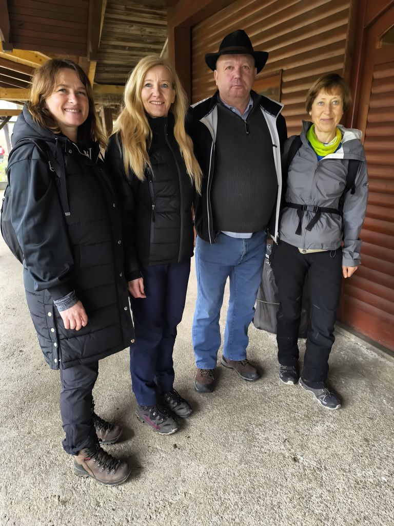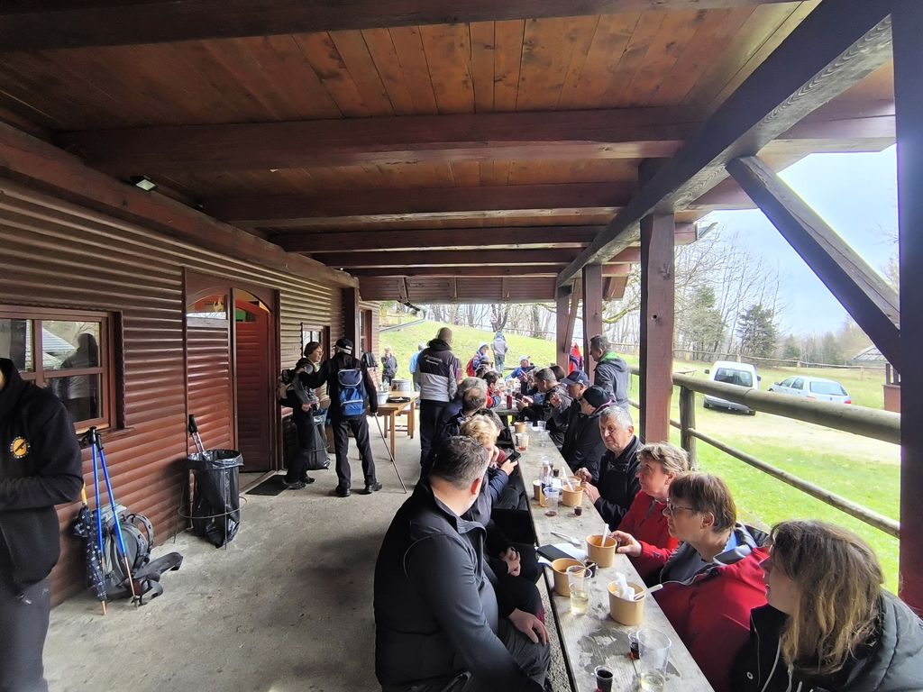 Preko Velikega Lipovca smo pot nadaljevali po gozdni cesti proti naši naslednji postojanki na Plešivici. Med potjo, ki v tem delu teče skozi gozd, kjer ni razgleda, pa je bilo več priložnosti za klepet, medsebojno spoznavanje in izmenjavo planinskih doživetij. V konjeniški koči na Plešivici nas je prijazno sprejel gospodar Toni in pohodnike povabil v zavetje doma. Okrepčali smo se s toplo malico, nato pa smo se odpravili še do razgledne točke, ki jo krasi lepo dodelana klop s čudovitim razgledom na dolino Krke. Mimo lovskega doma smo se po ustaljeni poti vrnili nazaj na Dvor.
